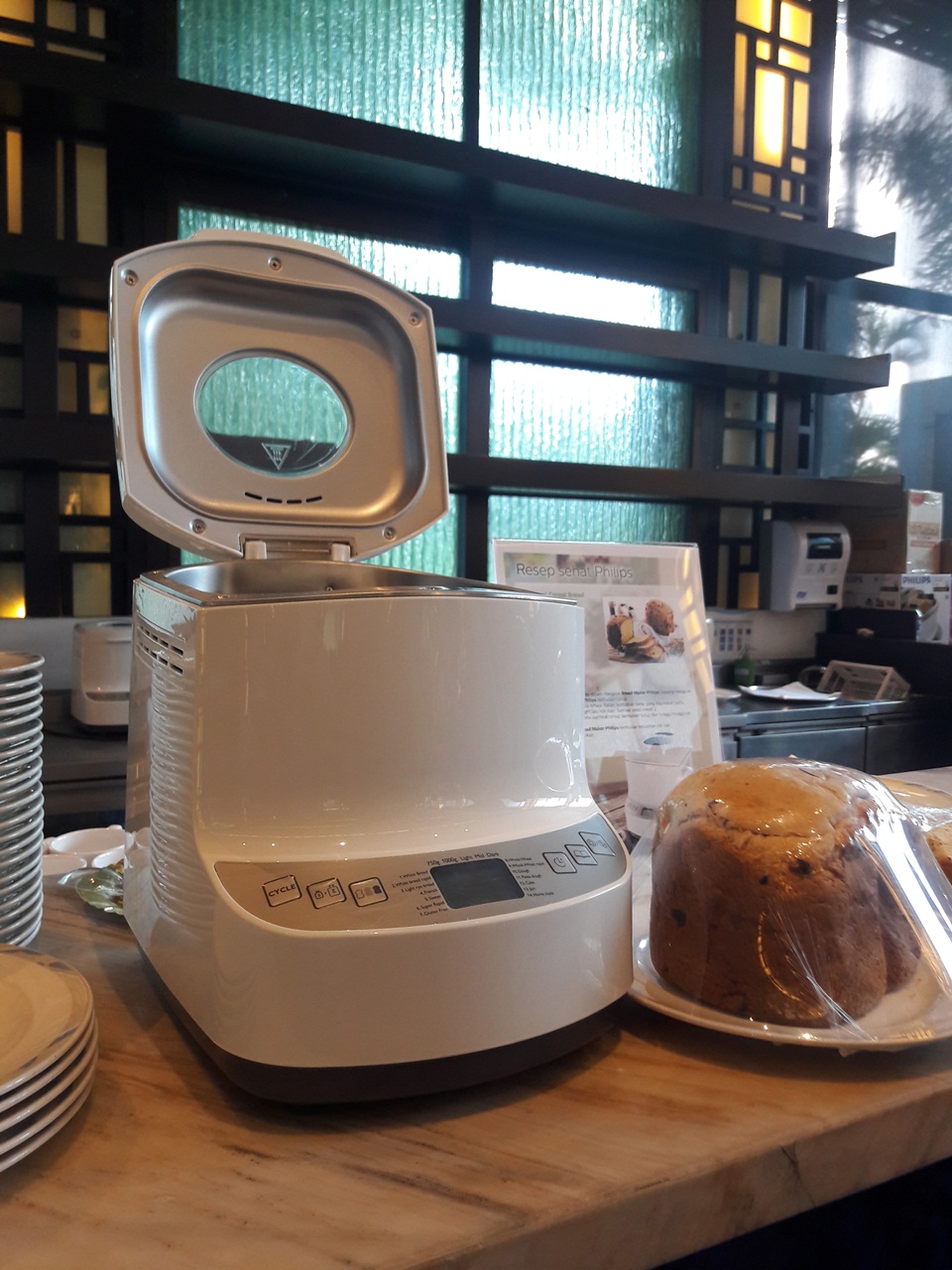 Kehadiran Philips Bread Maker HD9045 juga jadi idaman para penggemar roti. Tidak perlu beli roti, pizza atau donat diluar cukup membuatnya sendiri di rumah dengan membuat rasa dan kematangan roti sesuai selera. Tersedia 14 pengaturan untuk membuat banyak sekali jenis roti mulai dari roti manis, roti gandum, roti bebas gluten sampai selai. Chef Arimbi memperlihatkan cara membuat roti jagung dengan Philips Bread Maker HD9045  yang akhirnya memuaskan, rotinya lembut, warna kematangannya manis dan rasanya enak. Bahkan ukuran rotinya pun bisa diadaptasi keinginan, bisa ukuran 750 gr atau 1 kg. Pengen banget punya efisien dibanding membuat roti sendiri yang membutuhkan waktu lebih lama.