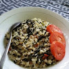 - Setelah daun mengkudu mulai menguning layu dan bau bumbu tercium harum, masukkan nasi putih ke dalam bumbu. aduk sampai semuanya merata.